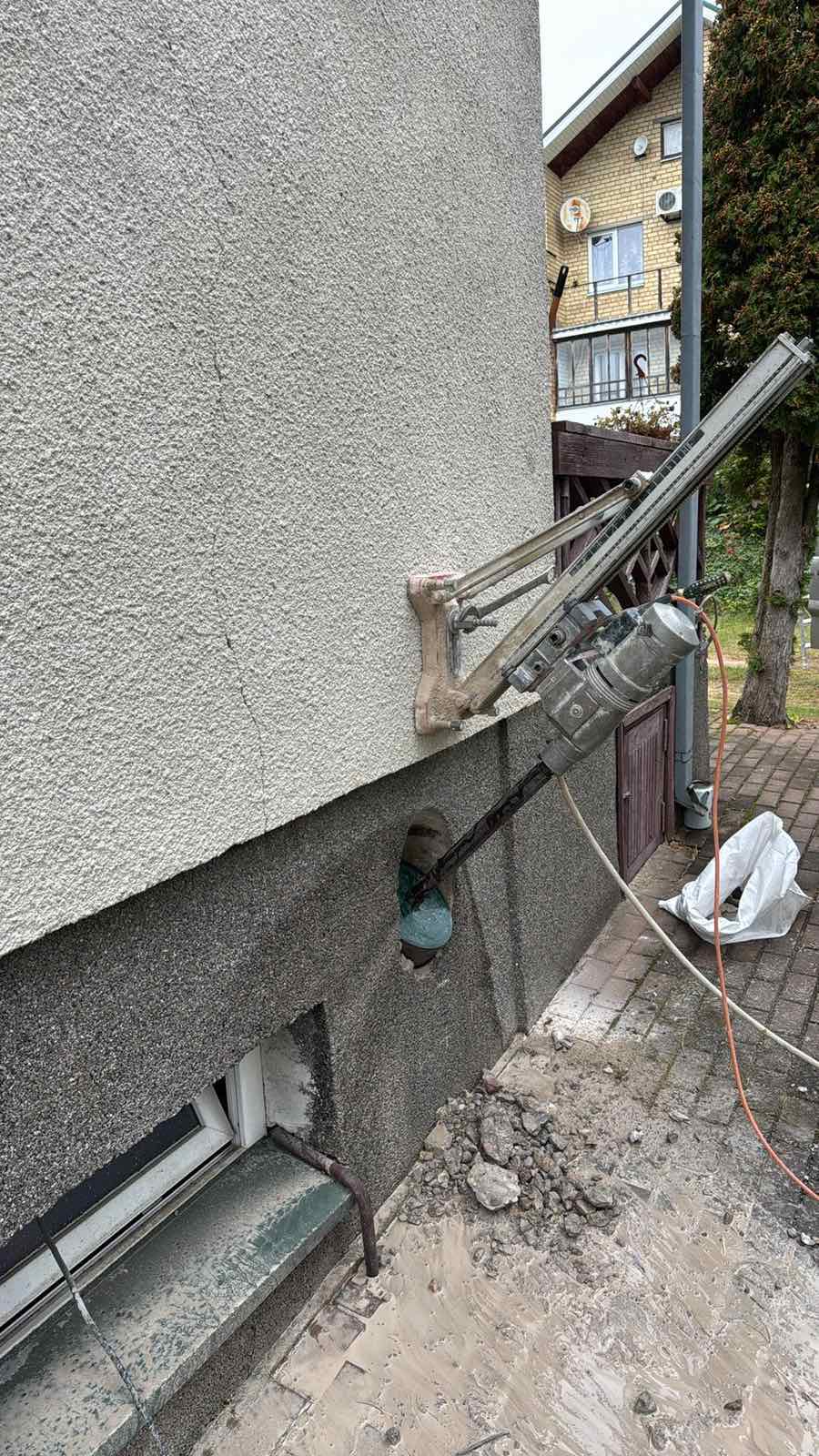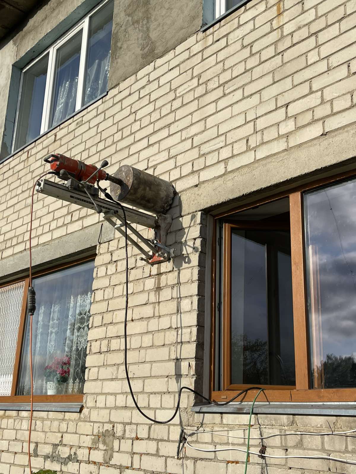 skylių gręžimas per sieną, mūrą. plytas, betoną, monolitą